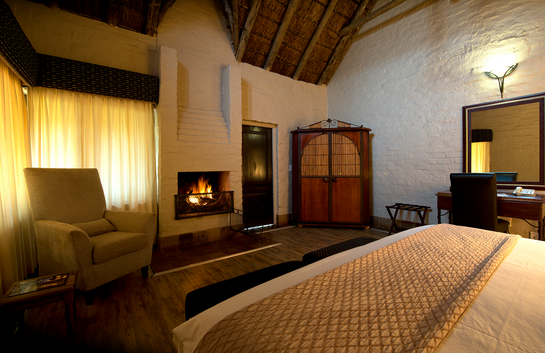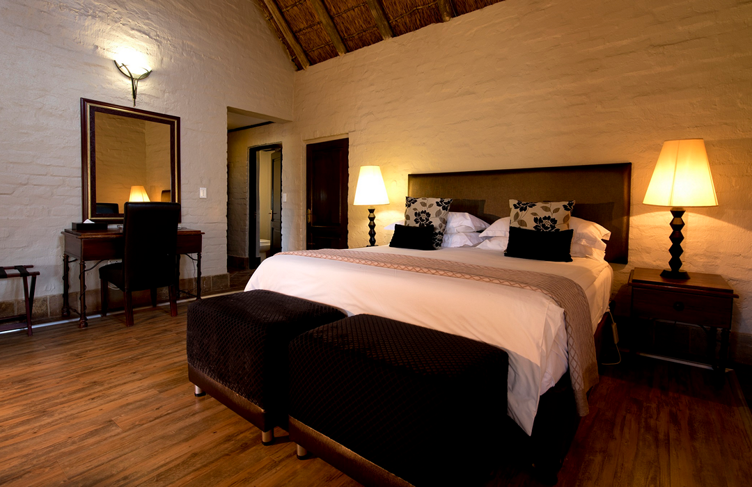 The bedrooms are linked by walkways to the reception, restaurant, conference room, and boma. Spacious double/twin rooms are complemented by sundowners on your own private deck with the ever-changing colours of the Entabeni Mountain reflecting in the lake.