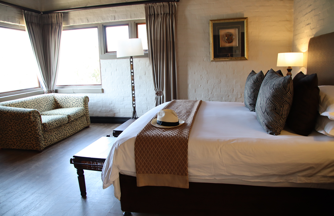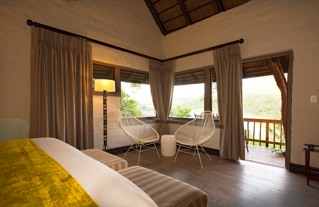 The bedrooms are linked by walkways to the reception, restaurant, conference room, and boma. Spacious double/twin rooms are complemented by sundowners on your own private deck with the ever-changing colours of the Entabeni Mountain reflecting in the lake.